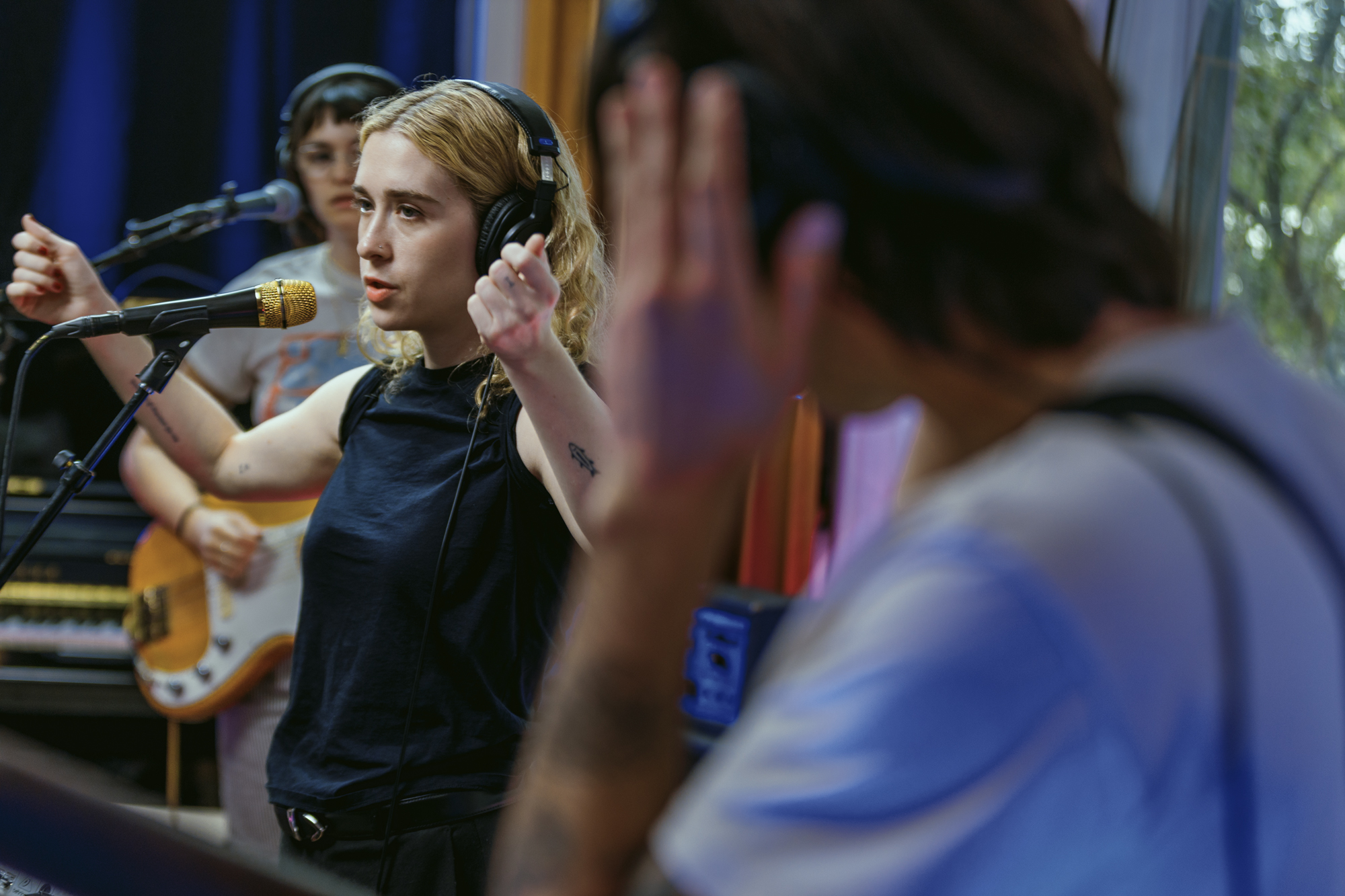 Between recording the songs, Blondshell sat down with Julie Slater and Jason Friday to discuss the recording of the album, her creative process, and finding traction as her performer. During the interview, Blondshell explains that much of If You Asked for a Picture was written at home – literally in her room- with demo tracks captured on her phone. Emphasizing this point, she explains how that mind space is so important, “ It has to feel really everyday for me to feel comfortable,” she shared. “If there’s too much ceremony around it, it stops feeling natural.”